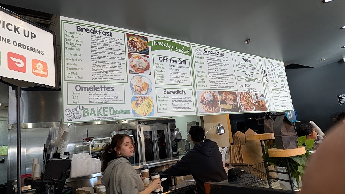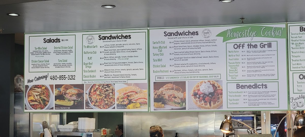 Lettuce, tomato, avocado, sprouts, red onion, Swiss cheese, balsamic vinaigrette on wheat bread