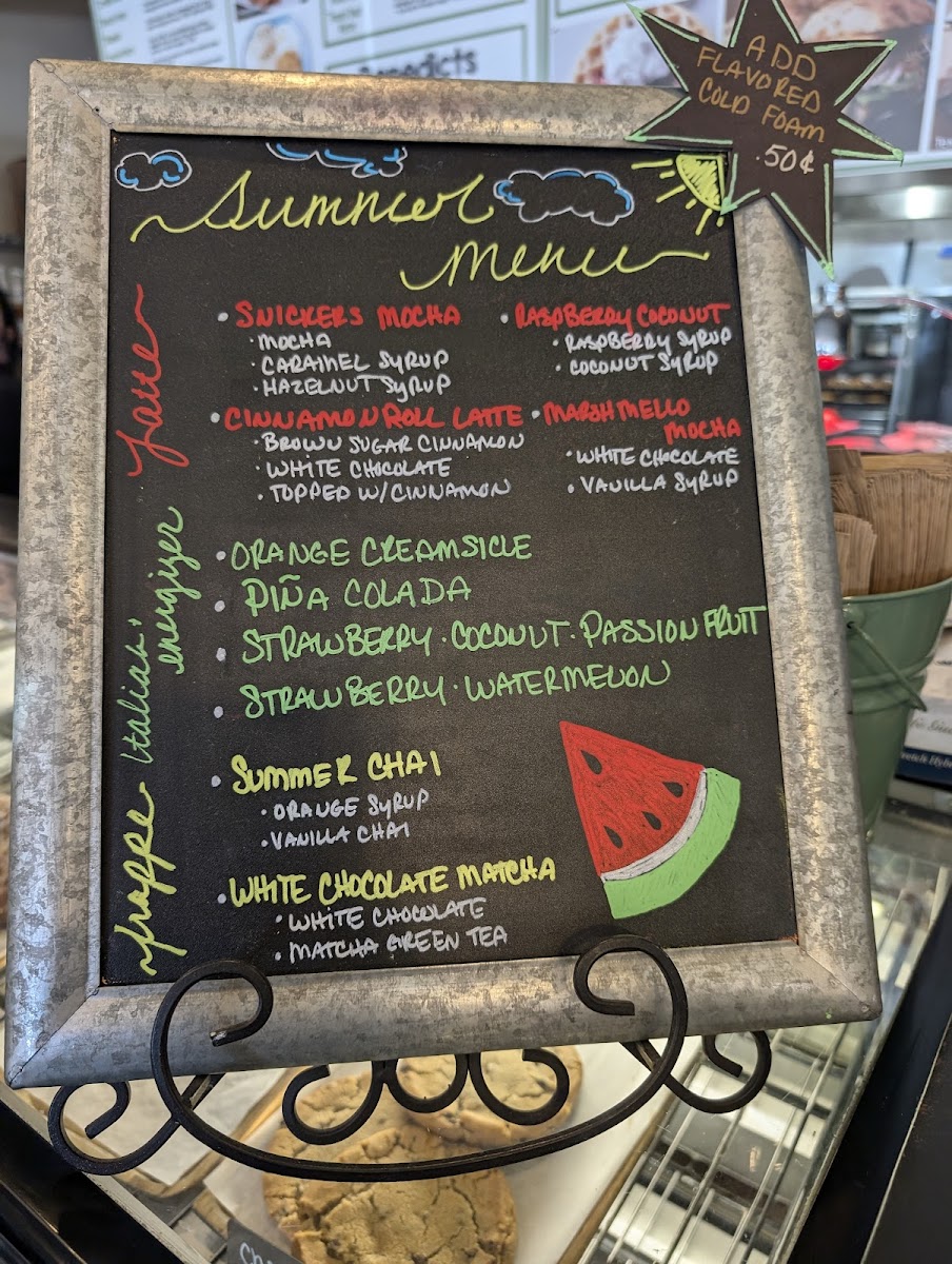 Vanilla Italian soda, 20 oz. Choice of half and half, almond milk, or soy milk. Optional whip cream.